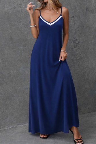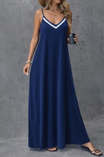 • Kadın ip askılı v şerit yakalı uzun viskon elbise